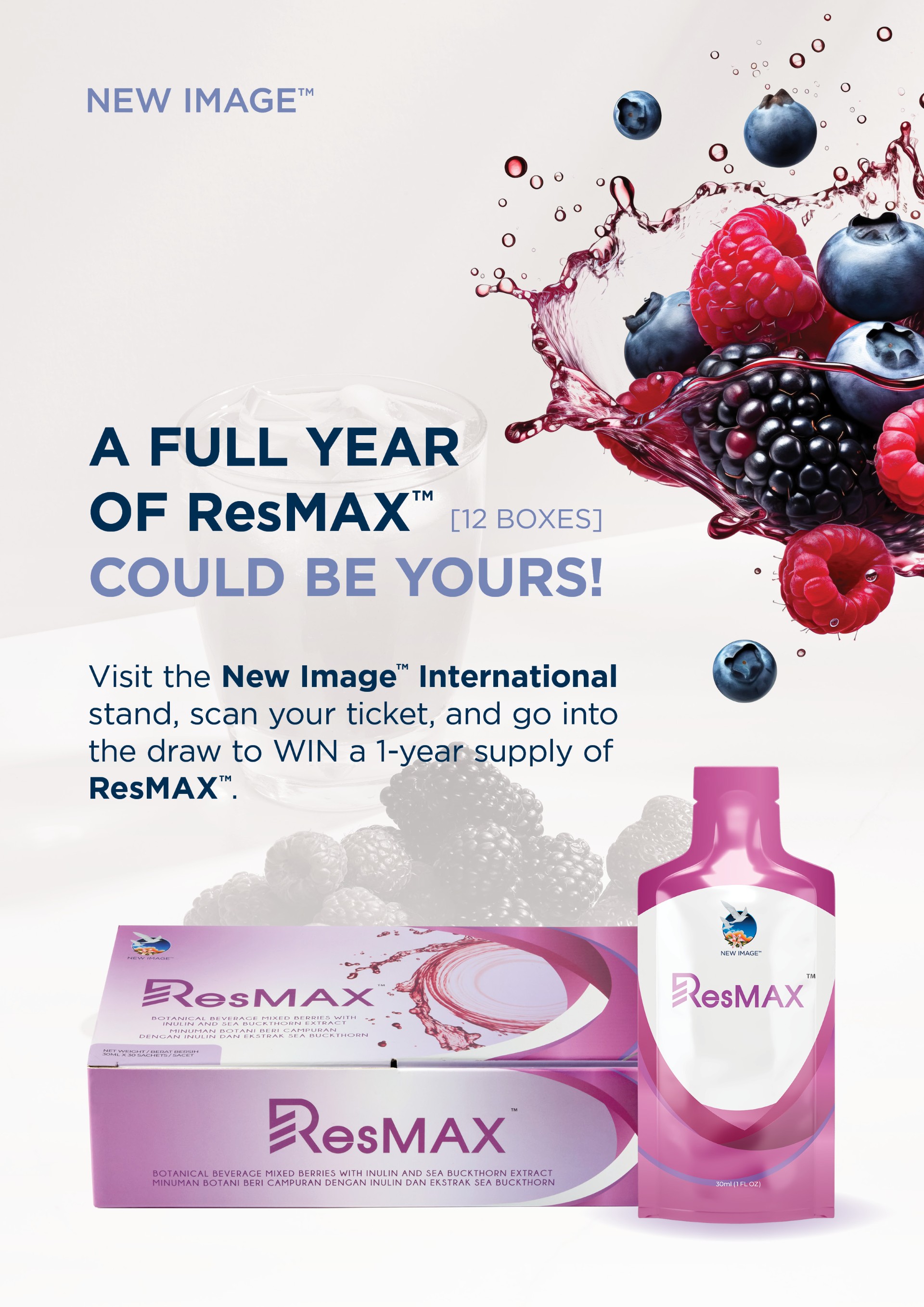 Complete the form or scan your ticket at the stand and go into a draw for a 1 year-supply of ResMAX!